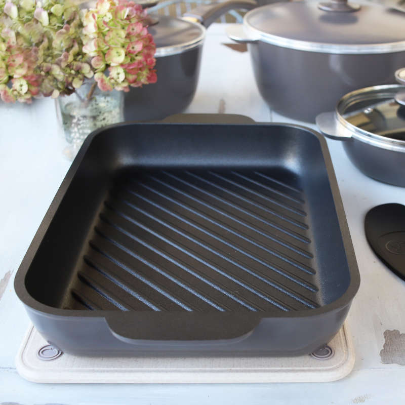 ¡Exclusivo diseño! Optimiza la distribución del calor logrando una cocción pareja y un sellado crocante. Esta bífera ha sido pensada para realizar cocciones para 4 comensales. Está recubierta por antiadherente lo que facilita su limpieza y sus paredes laterales son más altas lo que minimiza el salpicado. Su uso ideal es para la cocción de carnes, grillado de verduras, arrollados de queso, hamburguesas, brochetes, carnes blancas, etc.